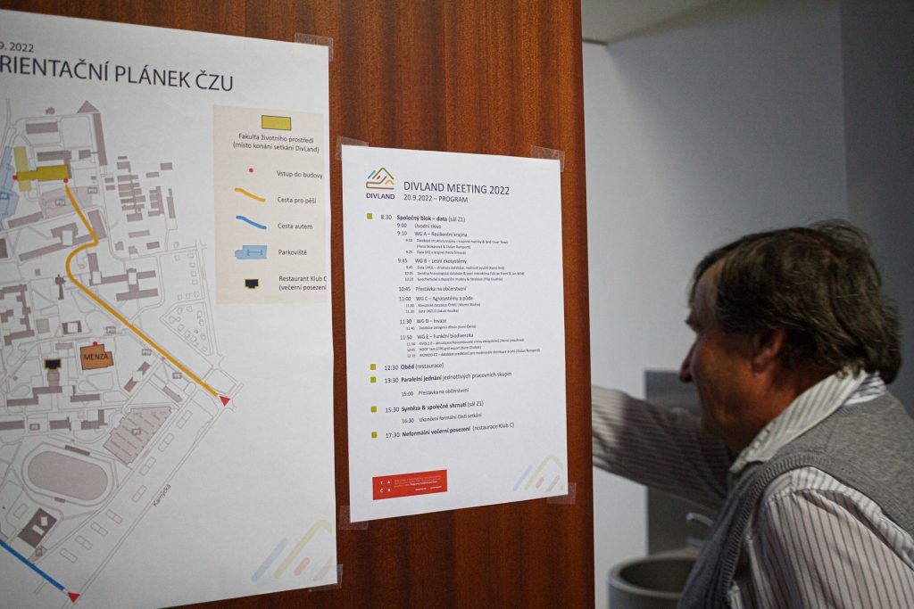 Druhé celoprojektové setkání řešitelského týmu DivLand se uskutečnilo 20. 9. 2022 v prostorách Fakulty životního prostředí ČZU. Dopolední společný blok byl věnován vzájemnému představení vznikajících nebo získaných datasetů, které jsou klíčové pro hodnocení stavu a dynamiky krajiny, resp. jejích ekosystémů. Z diskuze napříč všemi pracovními skupinami vyplynul apel na co možná nejširší sdílení a otevřené poskytování dat všech relevantních resortů pořízených z veřejných prostředků. Odpolední bloky byly zaměřeny na postup řešení v rámci jednotlivých pracovních skupin, plodná mezioborová diskuze pak probíhala i na neformálním večerním posezení.